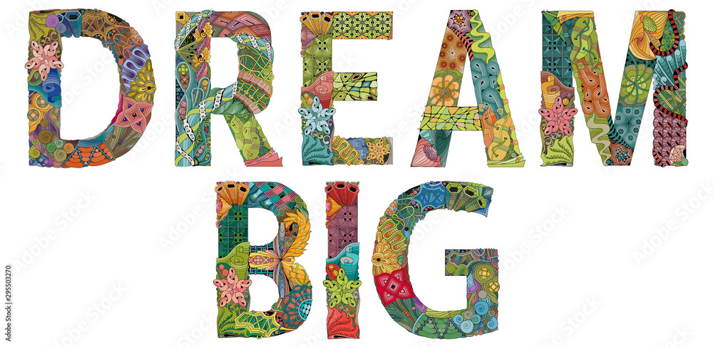 Words Dream Big Vector Decorative Zentangle Object For Decoration Stock Vector Adobe Stock